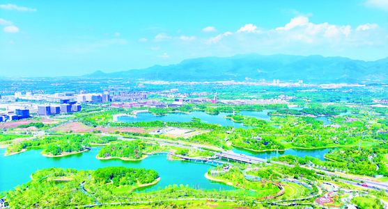 秋日里的金漪湖景色宜人,场景保留超60%原生态基底,通过连通羊尖山等水库形成优美水网,打造出研学湾、湖心岛、云水汀等特色景观。优美环境不仅吸引了大量游客,还成功引进了多家科研机构和高新技术企业,实现了生态与经济效益的双赢。