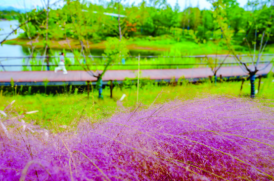 在金漪湖科技创新策源地秋枫港、金满湖公园、赤山公园等地,浓郁的秋色同样点染着风光无限。色彩鲜亮的步道顺着湖岸蜿蜒,粉嫩的粉黛草点缀两侧,各色植物争妍斗丽。这些好景致,成了周边居民的“天然健身房”,人们换上运动装,或是沿着步道慢跑,或是打太极拳,在享受自然美景的同时,收获身心的愉悦与放松。