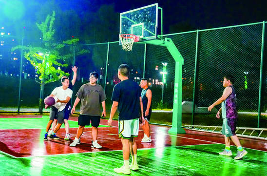 如果说绿道是市民休闲运动的“慢生活”舞台,那么江边运动场便是热血与激情的“竞技场”。随着“浙BA”赛事激战正酣,金东全民健身热潮持续升温,掀起一波运动热潮。每天7时30分,艾青文化公园篮球场逐渐热闹起来,这里的“民间篮球赛”吸引了不少篮球爱好者。球场上,球员们运球、传球、投篮动作行云流水,对抗精彩、酣畅淋漓;场边,有人带着孩子学习篮球技巧,举着手机记录精彩瞬间。经常来打球的市民张先生说:“这两天天气转凉了,下班吃晚饭稍作休息就过来和大家打篮球,太爽了!”
