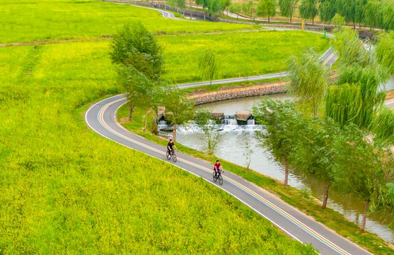 骑行爱好者则偏爱乡村绿道骑行。每逢周末,骑行者戴着头盔、穿着骑行服,沿着绿道穿梭。沿途或有金黄的稻田,或是层林尽染的山林,专门划分的骑行道宽敞平坦,避开了机动车干扰,安全又舒适。“这里风景很好,离家也近,很适合骑行,骑完车再去附近的稻田咖啡喝一杯,压力都烟消云散了。”在塘雅万亩田园的绿道上,骑行爱好者结伴而行,穿梭在稻田之间。家住塘雅镇清江村的小范说,最近稻田风光很美,经常会约上朋友来这里骑行,既能锻炼身体,又能欣赏美景。