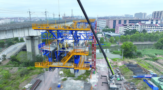 日前,位于孝顺镇的金塘特大桥跨孝顺溪、塘源线的“双88”米连续梁施工现场,工人们正在进行桥梁上部结构。据悉,该桥全长共6879.9米,桥梁多处紧邻沪昆高铁与普铁,同时跨越多处道路、河道和既有普铁与高铁,施工难度大,预计该连续梁在2026年1月份合龙。
