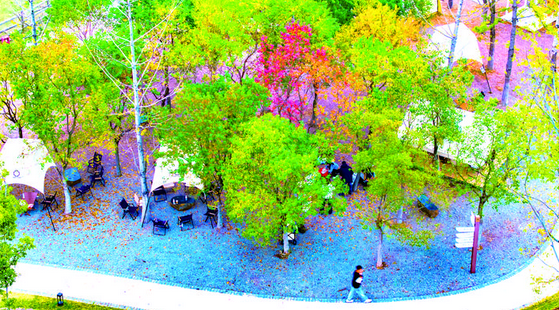 太阳渐渐升高,日光穿透云雾洒在山林间,落在地面光影斑驳,与山间景色相映成趣。整座积道山宛如一幅晕染开的水墨画卷,既有黛山云雾的清雅,又有红黄秋林的绚烂,将冬日的静谧与灵动完美交融,每一处景致都透着醉人韵味,让人沉醉。