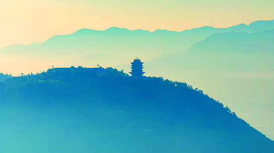 清晨,天刚破晓,记者登上积道山远眺,一场冬日的视觉盛宴悄然铺展。晨曦如轻纱般漫过天际,将远山近林染上一层柔和的暖光,原本清晰的山体轮廓在微光中变得朦胧婉约。黛色的山峦层叠起伏,与山间蒸腾的缥缈云雾缠绵。抬眼间,云雾时而如流瀑般顺着山势倾泻,时而如轻纱般萦绕林间,让整座山添了几分仙境般的空灵。