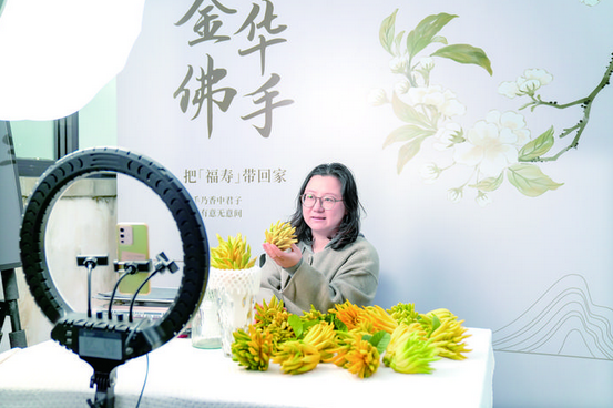 眼下正是佛手成熟的季节,连日来,赤松镇北山口村村民在自家农房改造的直播间里直播带货金佛手。