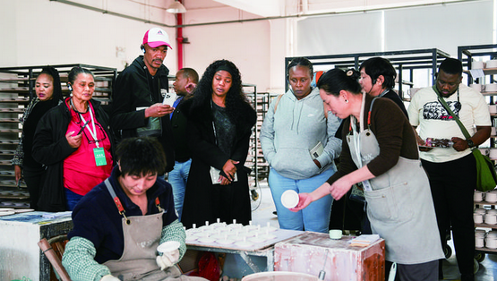 11月20日,近20名由金华职业技术大学组织的南非友人走进江东镇古婺窑火艺术馆,开启沉浸式非遗文化体验。