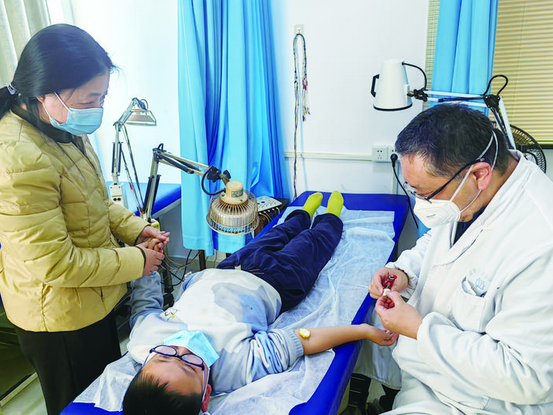 大约10分钟,“肚子不痛了哎。”琪琪的语气很是惊喜,最初频繁的咳嗽也在不知不觉中变成平稳顺畅的呼吸。“这说明佛手灸在起作用。”为琪琪治疗的赤松镇中心卫生院传统医学中心副主任程渊,是佛手灸的开发者,他介绍说,佛手性温,本身具有疏肝理气、和胃止痛、燥湿化痰等功效,药性、药效非常明确,在隔物灸疗法的加强下,能有不错的甚至立竿见影的疗效。