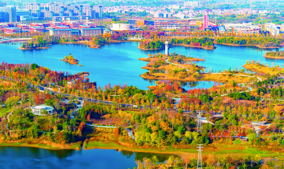 一年好景君须记,最是橙黄橘绿时。12月9日清晨,空中俯瞰金漪湖科技创新策源地,蓝天碧水风光绚烂,斑斓花木尽态极妍,多姿多彩的山水生态与人文建筑、科创核心相映成趣,勾勒浓墨重彩的冬日画卷。