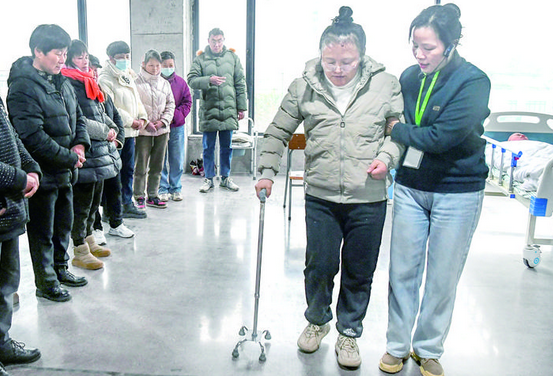 学员们在老师指导下,专注练习偏瘫老人换衣、轮椅转运、手杖康复训练等实操技能。培训考核合格后,学员将取得初级职业资格证书,由培训中心对接医院、养老机构推荐就业,助力灵活就业人员拓宽增收渠道。