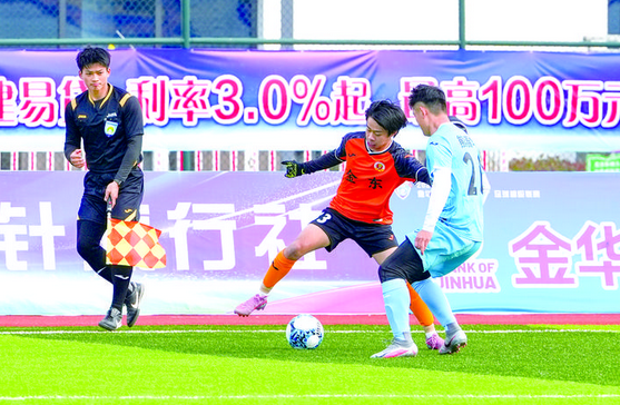 上半场尾声阶段,兰溪队加强逼抢试图反扑,但金东防线稳如磐石,门将也表现稳健,将对手的反攻悉数化解。