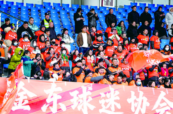 “东东加油!东东必胜!”场边随队远征的金东球迷,用持续全场的呐喊声和助威声,表达着对金东队的坚定支持。