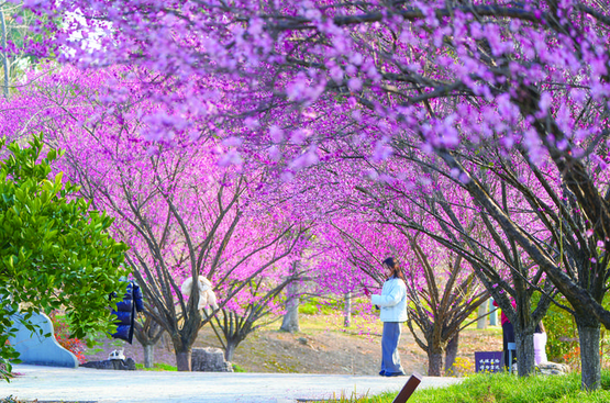 2月2日,赤山公园内的大片梅花绽放,暗香浮动。花瓣粉红、花蕊金黄,游客或驻足拍照,或沿小径漫步,尽享这份冬日的清雅诗意。