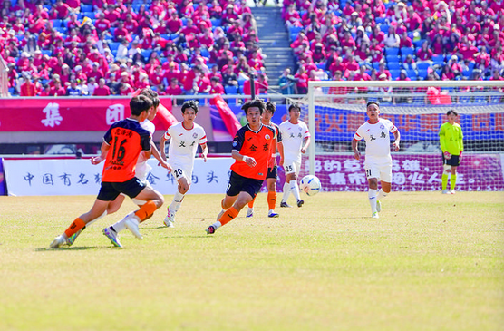 自2010年启动校园足球工程以来,金东摒弃急功近利的短期思维,以“从娃娃抓起、从基层做起”的战略定力,构建起全链条足球育人生态。通过组建体育共建集团,打破校际壁垒,整合优质资源,推动校园足球从“单点出彩”迈向“全域提质”。如今,金东有19所全国青少年校园足球特色学校、14所省级特色学校,“班班有球队、年年有联赛”成为校园常态,足球不再是单纯的课外活动,而是融入日常的教育载体,成为学生成长成才的“加分项”与“通行证”。孝顺镇中心小学作为其中的标杆学校,通过建立完整梯队培养体系,十余年来向职业俱乐部、优质高校输送大批优秀人才,本届金东队23名球员中,15人毕业于该校,青训成果直接转化为赛场战力。从校园到职业赛场,“贯通学段、衔接职业”的人才培养通道已然打通,这种久久为功的深耕,让金东足球拥有了取之不尽的后备力量,筑牢了优秀体育人才可持续发展的根基。