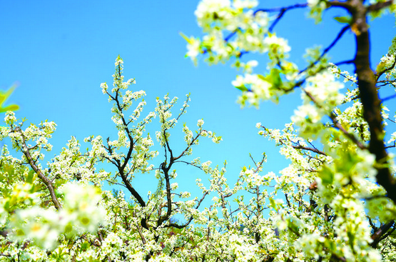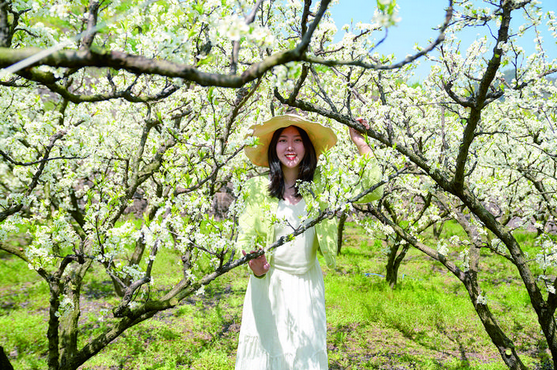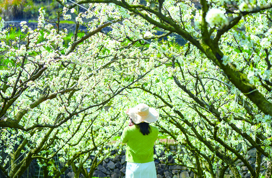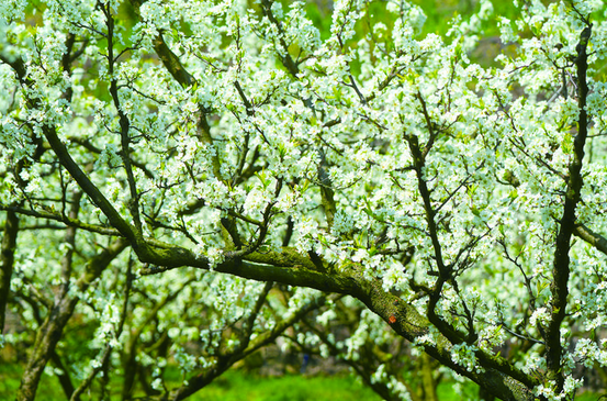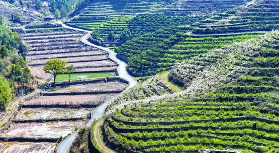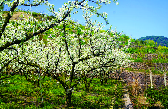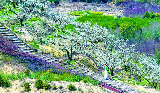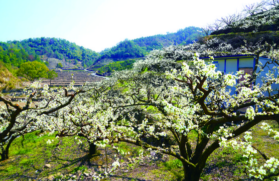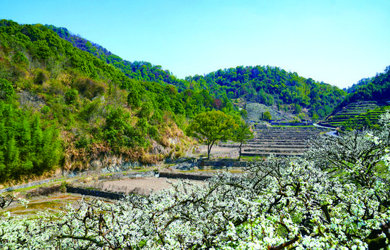 层层梯田,点点李花