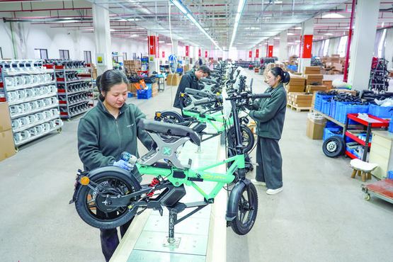 连日来,位于孝顺镇的浙江锋鸟车业有限公司生产车间内一派繁忙。工人们有序开展焊接、组装、调试、检测等工序,一辆辆电动自行车快速下线,发往全国各地。据了解,当前企业订单饱满,正以满产状态抢抓市场机遇,展现新能源出行产业蓬勃活力。