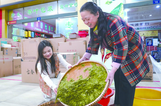 3月12日,在位于东孝街道的浙中茶叶市场,多家茶叶经营户在店前摆放“新茶上市”的醒目告示牌。店内,商家正忙着进行筛茶、包装等工序,现场一派繁忙有序的景象。据了解,自3月初以来,各类春茶陆续上市,目前上市的新茶涵盖早春龙井、缙云黄茶、开化龙顶等多个品种。