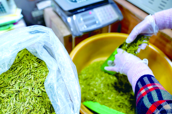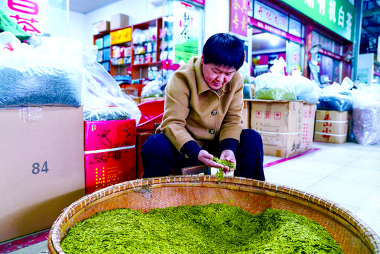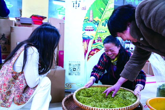 熙攘人群中,专程从黑龙江哈尔滨赶回金东老家的茶商钱惠增显得尤为引人注目。在哈尔滨从事茶叶生意三十余年,每年春茶上市之际他都会返乡采购,维系着跨越南北的茶香情缘。“今年新茶一上市我就赶回来了,想趁早挑些品质好的茶叶带回去卖。今年春茶价格比往年实惠不少,这次计划先采购100多斤。”钱惠增一边仔细看茶样,一边对记者说。