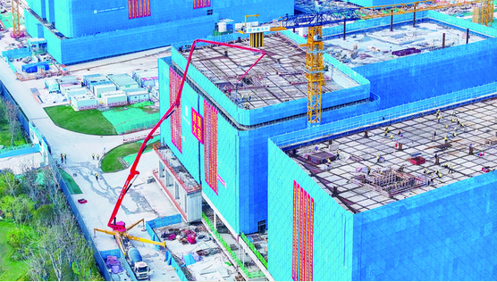3月25日,金漪湖未来产业科技园配套基础设施项目现场,由中建八局承建的1、2、3区块结顶,工期超前推进。