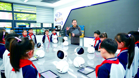 4月1日,金东区实验小学的“AI”创客教室里,老师通过人工智能教育机器人开展人工智能项目课程教学,鼓励学生通过AI体验、训练、创作,让学生乐享科技魅力的同时培养、激发自身学习与思维创新能力。近年来,该校AI创客学员在全国青少年人工智能创新挑战赛中获得金奖13人,银奖8人,铜奖6人,在省市各类创客竞赛中获奖达600多人次。
