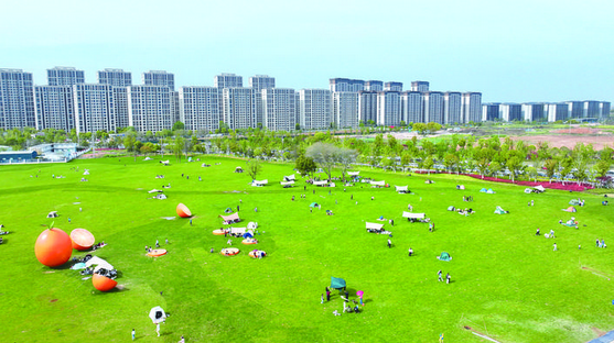 近日,金满湖草坪加油区游人如织,市民携家带口,在这里尽情拥抱春日美好。