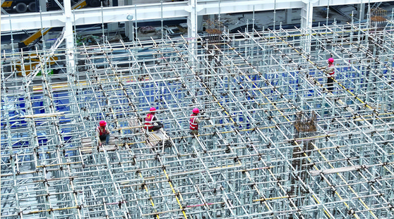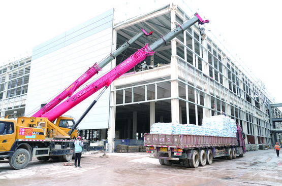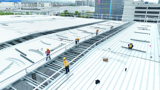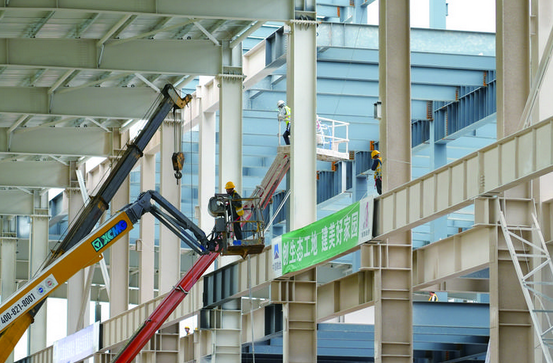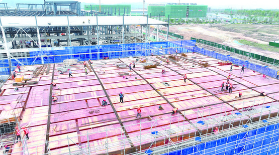 面对工期紧、任务重的挑战,项目建设团队采取了切实的保障措施。旭瑞绿建项目执行经理胡宝群介绍:“我们加大设备投入,现场有吊机12台、登高车27台,施工人员400多人,高峰期计划增至700-800人。春季雨水多,我们夜间加班、提前封闭屋顶,确保雨天室内工序不停工,全力抢进度、保节点。”