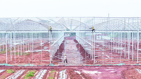近日,在东孝街道无花果“健康+”共富项目现场,工人们正进行温室大棚拱杆安装。目前,拱杆安装已完成80%,大棚骨架初具雏形。据了解,该项目总投资3.32亿元,建成后将有效带动周边农户增收致富。