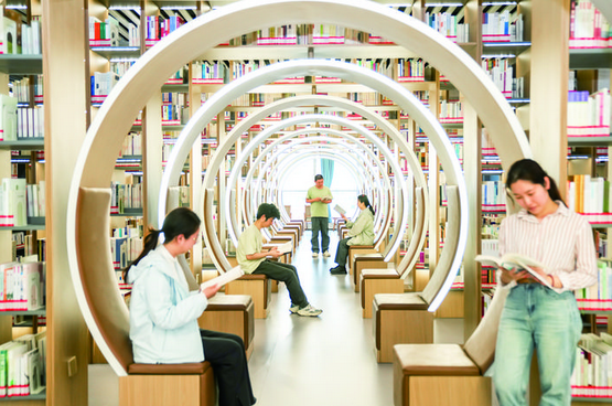 4月21日,在金东人文博览中心图书馆内,不少市民沉浸在书香之中,静心阅读喜爱的书籍,尽享阅读带来的乐趣。