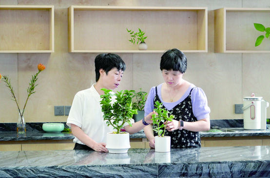2022年,电商直播悄然兴起。邢燕敏锐地捕捉到了行业的发展风口,在村文旅会客厅辟出直播间,带领电商团队做直播销售;创建了“e万家共富工坊”,推行“强村公司+种植户+电商”运营模式,抱团发展佛手产业。通过短视频拍摄、现场直播等多种形式,邢燕带领团队把佛手鲜果、佛手盆景、佛手的深加工产品在线上销售得红红火火。结合市场需求,她还探索出“佛手青果”销售、“佛手一物一拍”等方式,不仅破解佛手销售周期短的困境,更大大提高佛手的身价。“e万家共富工坊”像一块磁石,吸引了各年龄段村民。从经验丰富的“50后”种植员到懂直播的“00后”推广员,如今北山口村超过半数村民融入产业链不同环节。电商实现了佛手产业从田间到云端的跨越,而随着佛手产业链的延长,村民们全年有活干、四季有收入,共富从愿景变成了现实。