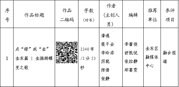 根据《“浙江推荐参评中国新闻奖”工作办法》的规定,现对金东区融媒体中心报送的1件参评作品进行公示,欢迎监督、评议。公示期为2026年2月12日至2月14日,监督电话:0579-82190730。如有不同意见,可通过电话或电子邮件等方式反映,逾期不再受理。