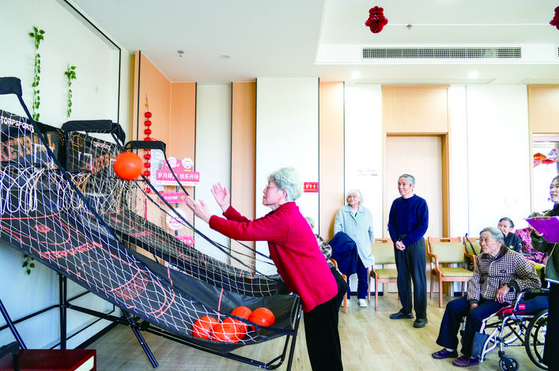 近日,金华市银湖暖夕阳·金东区社会福利中心开展趣味投篮大赛,20名老人踊跃参与。活动现场气氛轻松热烈,老人们精神饱满,尽显活力。